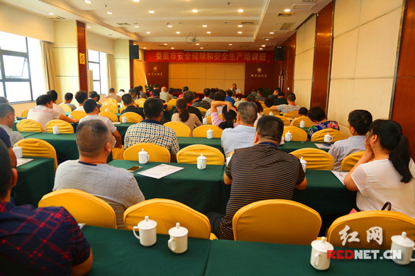 红网娄底6月29日讯(记者 谭卫丰 通讯员 王瑞新)6月27日—28日,娄底市商务粮食局召开全市安全储粮和安全生产培训班,为粮食系统相关负责人进行集中“充电”。各县市区商务粮食局(粮食局)分管领导、业务股长及各地方国家粮食储备库负责人、仓库保管员、安全员近90人参加培训,娄底市商务粮食局党组书记、局长龚洵胜作书面开班动员。