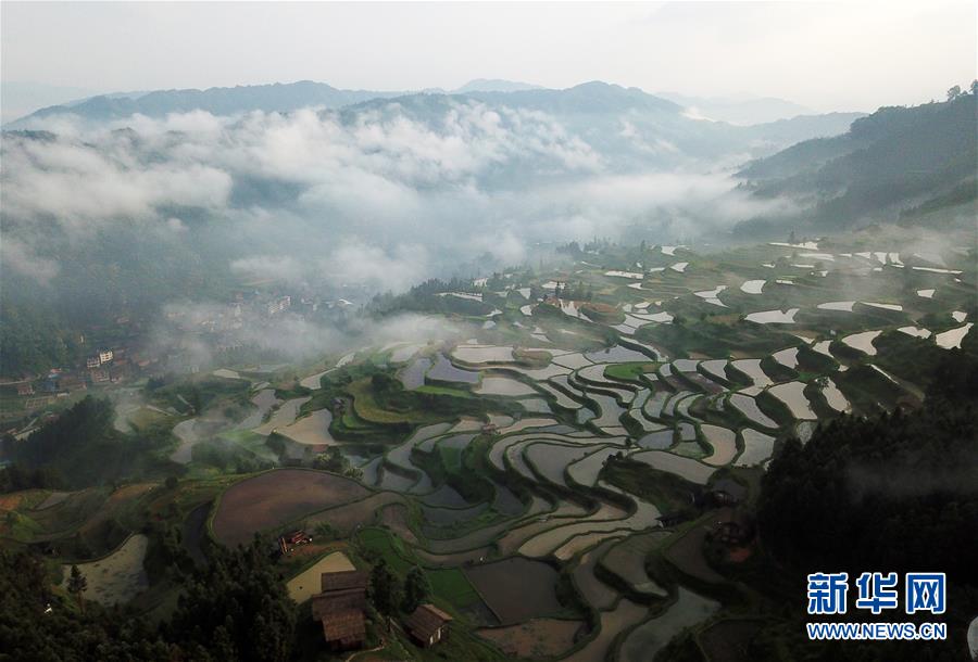 这是5月20日在贵州省黎平县尚重镇洋洞村拍摄的梯田(无人机拍摄)。 新华社发(杨文斌 摄)