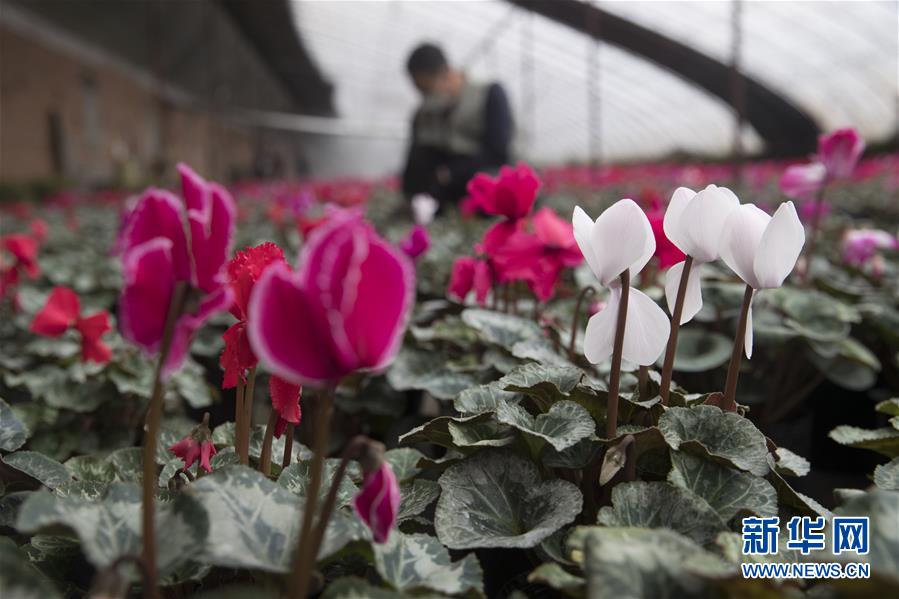 3月26日,黑龙江省红旗农场花卉种植基地的花农在照料花卉。 新华社发(张涛 摄)