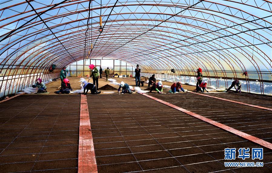3月19日,黑龙江垦区友谊农场种植户在育秧大棚内劳动。 新华社发(徐宏宇 摄)