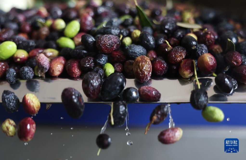筛选清洗、粉碎搅拌、固液分离、沉淀过滤……在甘肃省陇南市武都区,刚刚采摘的油橄榄经过流水线加工,变身一瓶瓶橄榄油。