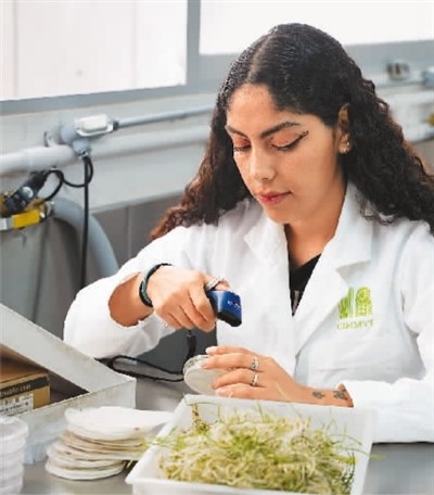 一名研究人员在墨西哥特斯科科郊外国际玉米小麦改良中心做实验。新华社记者 朱雨博摄