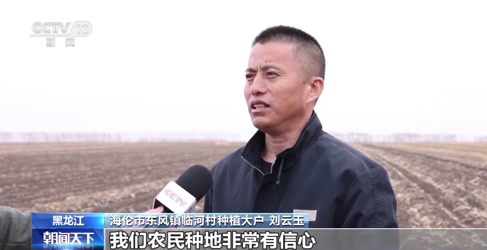 黑龙江省海伦市东风镇临河村种植大户 刘云玉:现在国家政策非常好,我们农民种地非常有信心,我现在是承包了2000多亩地,去掉一些调茬的面积,还有1500多亩地,我今年打算把它全部种上大豆。