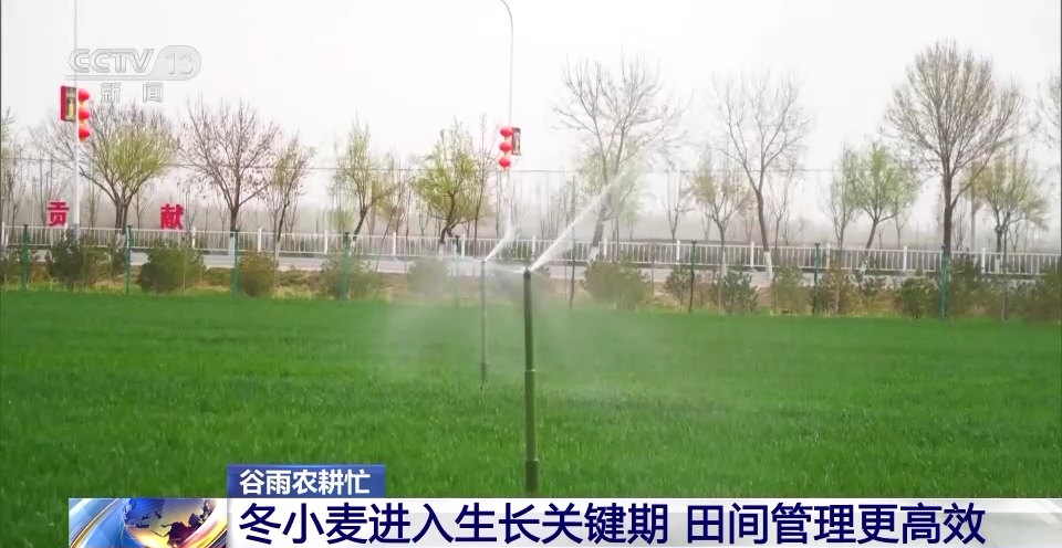 河北省小麦的大规模春灌正在持续,在全国农业科技现代化先行县示范基地——邢台市宁晋县北楼下村的麦田里,村民们只需要随手打开开关,地埋式多节自动伸缩喷灌设备就会进行高效精准作业。宁晋县农技人员也充分利用高效节水灌溉新模式和田间气象站等科技手段,帮助农民做好小麦春季管理。