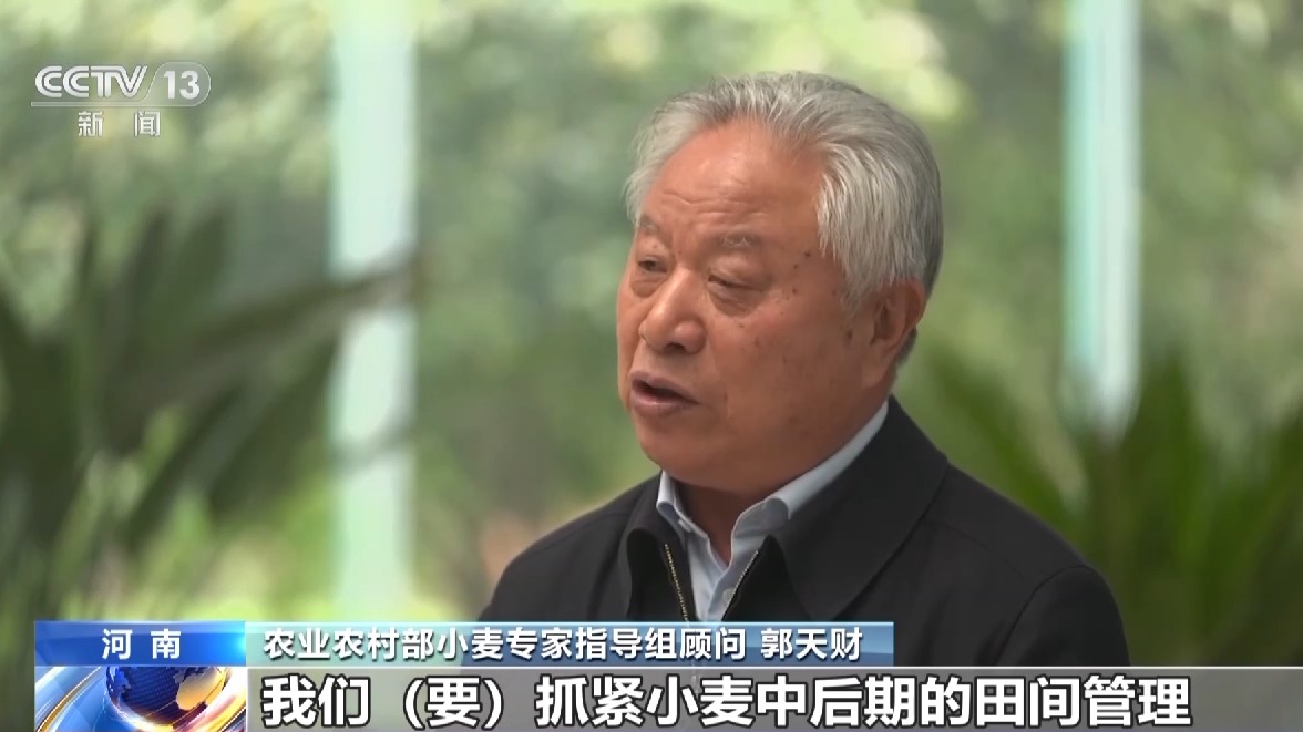 农业农村部小麦专家指导组顾问 郭天财:我们要抓紧小麦中后期的田间管理,一个措施一个措施地把它落实落地,一个环节一个环节,我们把它抓紧抓好,来巩固和发展当前苗情持续向好的态势,今年小麦丰收还是很有希望的。