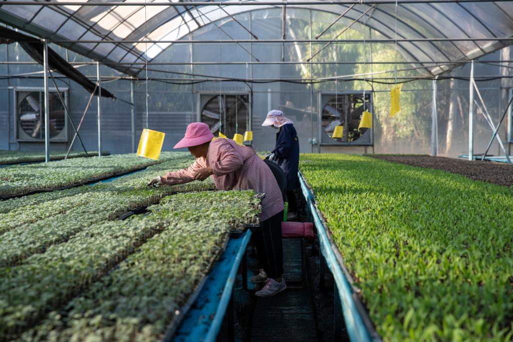 工作人员在云南省元谋县的育苗工厂大棚内进行育苗工作。受访者供图。