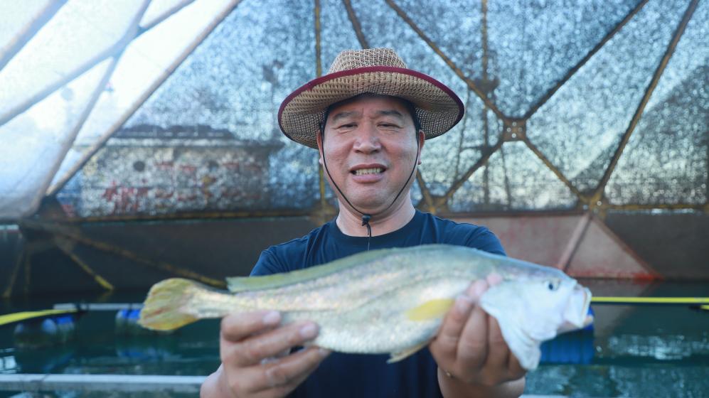 “深远海养出来的鱼,肉质紧实。两斤左右这一条鱼,一般正常的话我们拿出去卖一斤要一百来块,两斤左右要卖两三百块。”卢统锋说。