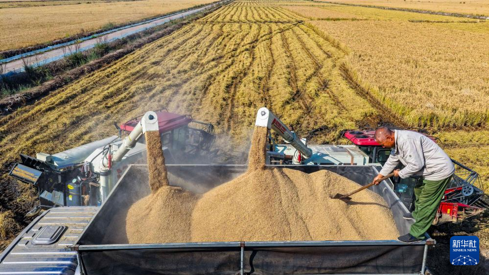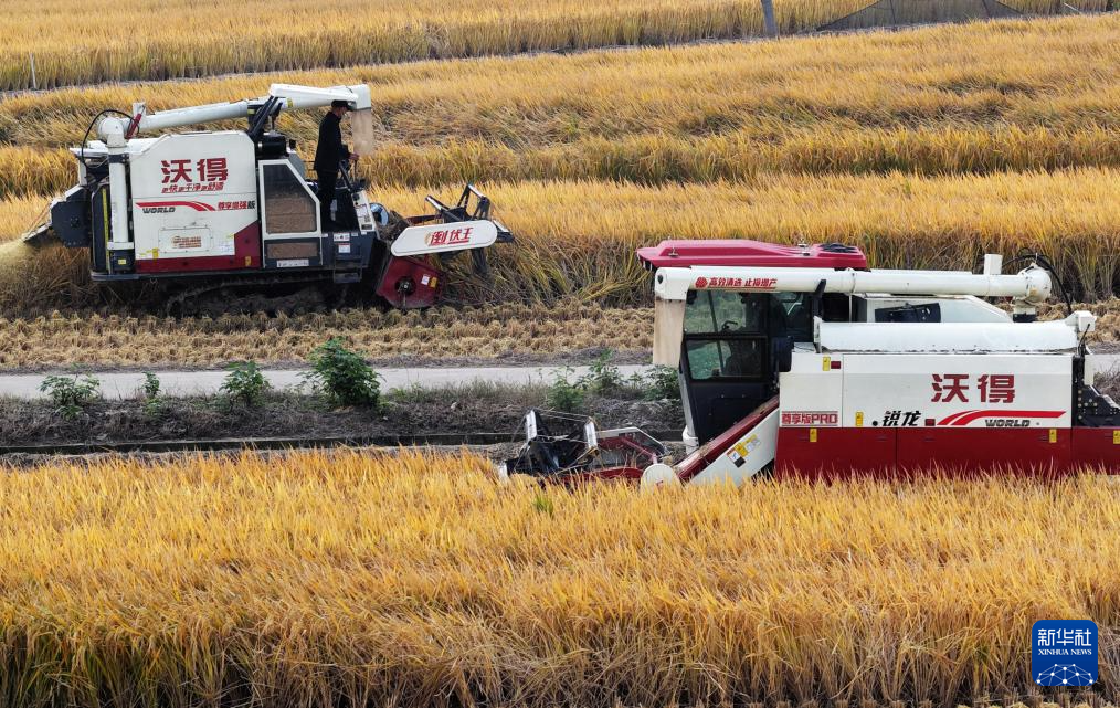 10月27日,农机手驾驶收割机在江苏省无锡市惠山区前洲街道黄石街村农田收割水稻。